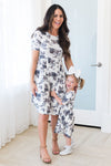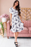 We cannot get over this fabulous and detailed rose floral The Melynda has to offer! We adore the draped waistline to the short sleeves make up for a flattering and modest fit! We know this perfect summer floral is going to sell out fast!