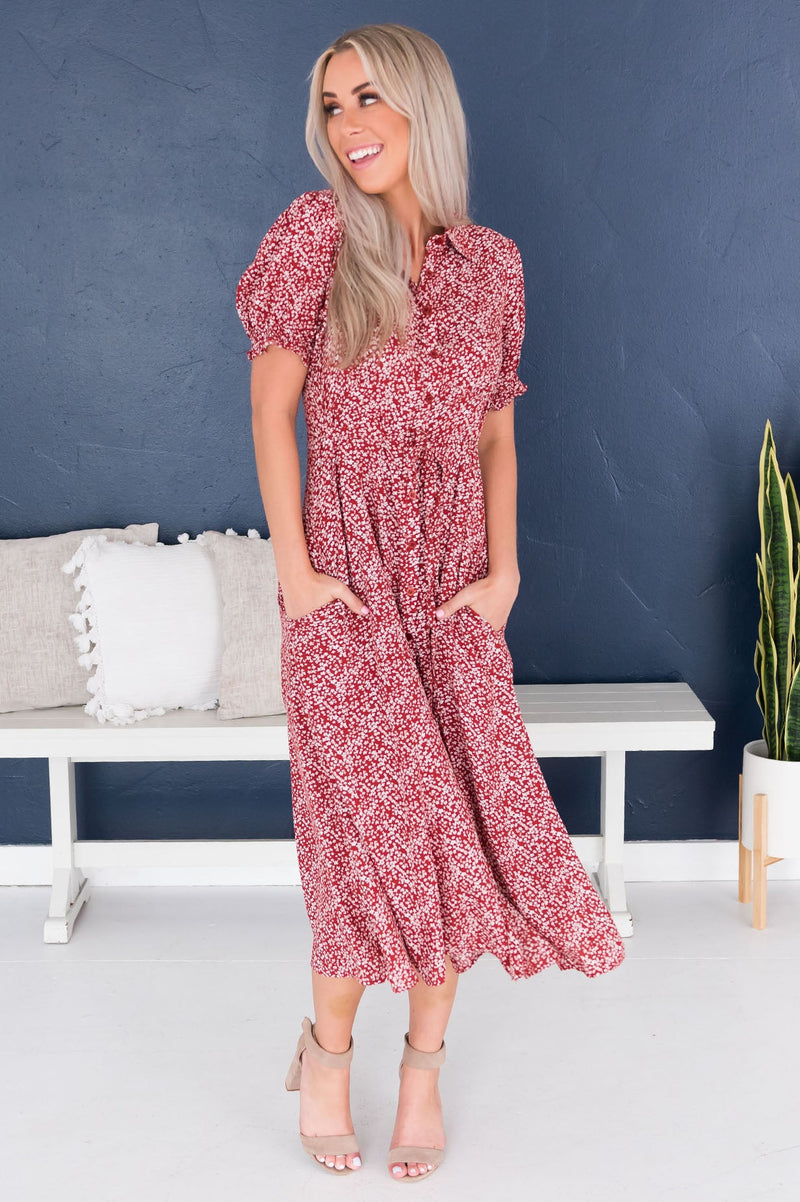 The new Melynda is bound to be a showstopper! This classy button front bodice dress is nursing friendly and oh so stylish! Features include collar neckline, belted waist and the most gorgeous flowy skirt! Get your hands on this darling dress today!