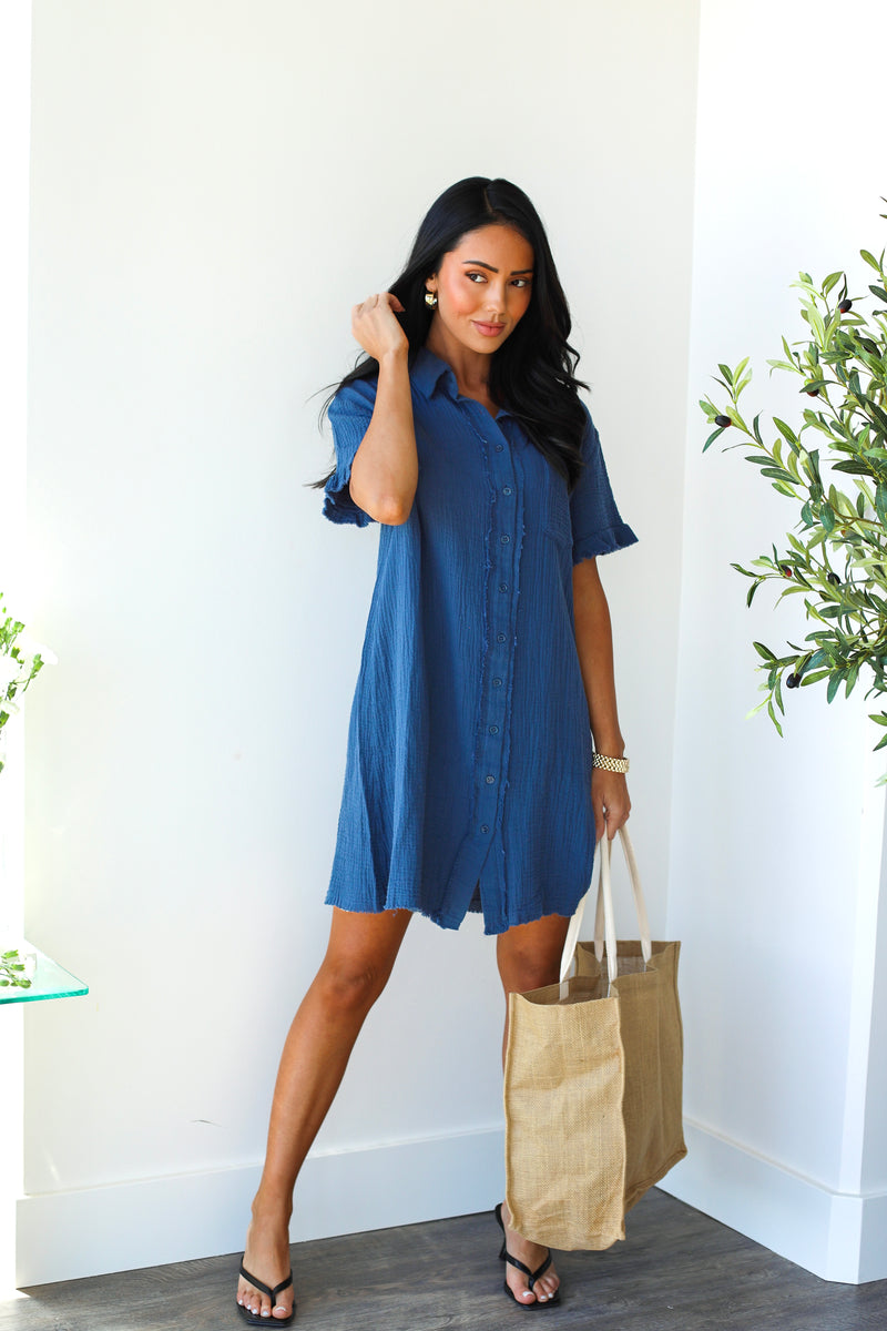 This lovely cotton dress is breathtaking! The darling collared neckline, short ruffled sleeves, functional button front and perfect mid-length skirt with raw edge detailing is all you need for any season! Grab the Micha today because we promise you this sweet thing will not last long!