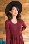 The Milah has stolen our hearts and we know it is bound to steal yours as well! This darling rich burgundy and black babydoll dress is the perfect pick for fall! It is great all by itself or pair it with your favorite scarf or sweater on those chilly fall days! Get yours today!