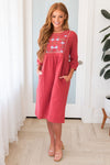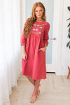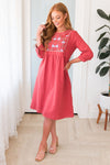 The Milana is the dress you never knew you needed! Featuring a round neckline, an embroidered floral bodice, 3/4 length sleeves, and a soft pink color! This dress is stunning, and it is calling your name! Add it your cart today!