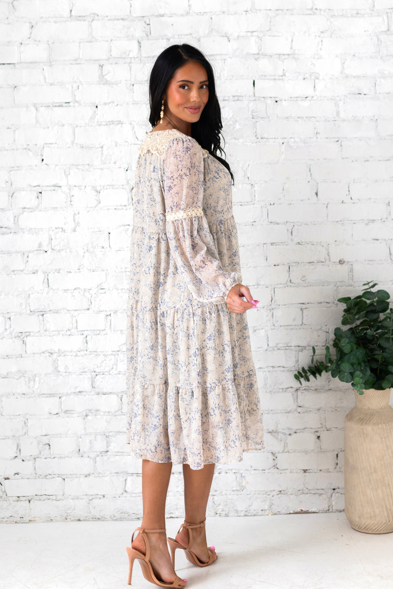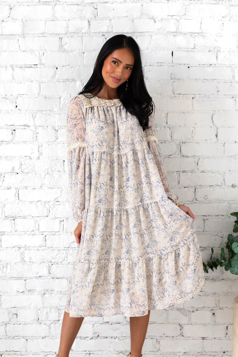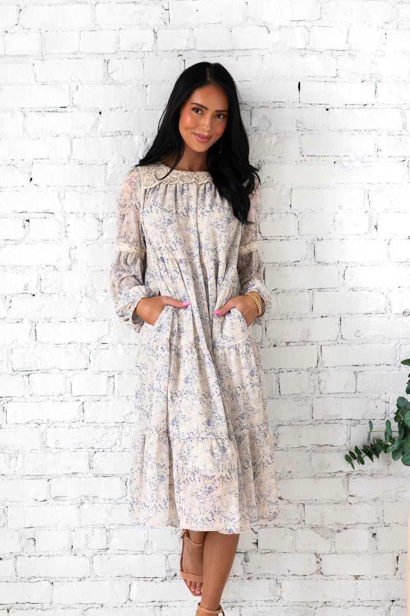We are obsessing over every little detail of our new Minna dress! This cutie is so flowy and fun, you are going to want to add to cart now for your Spring must haves! Featuring a cozy slip on style, long sleeves, pockets and the perfect midi length tiered swing skirt. Get yours today before they are gone!