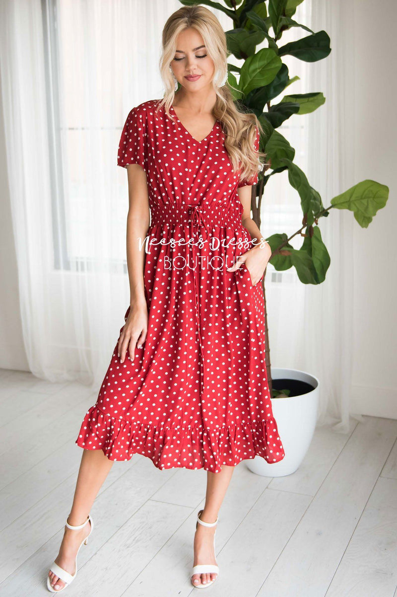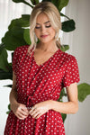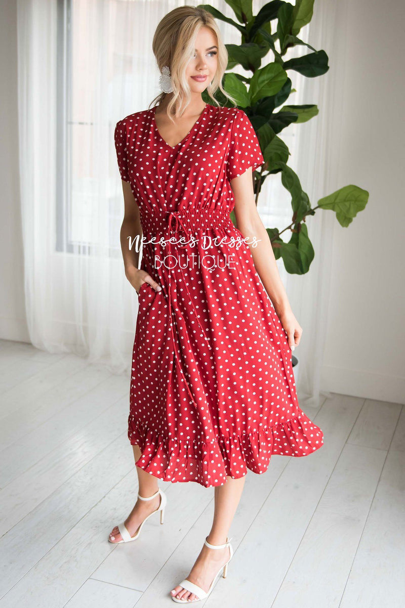 Okay we are obsessing over the Minnie! Doesn't it just make you want to take a trip to Disney!! This shade of red is so bold but so chic and classy! Perfect to pair with black heels for a date night! Or make it sweet by throwing on some cute wedges and a sun hat! We are loving the elastic waistband and cute little lace up detail! The Minnie features a cute ruffle at the bottom hem, v neckline and it has pockets!!
