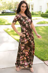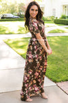 HELLO BEAUTIFUL! The Miranda is made of the softest material! You will look amazing but feel like you are in your pj's, talk about a win-win! This olive dress features gorgeous shades of mauve & gold floral print, an elastic waist and half sleeves. Dress slips on and has stretch to it.