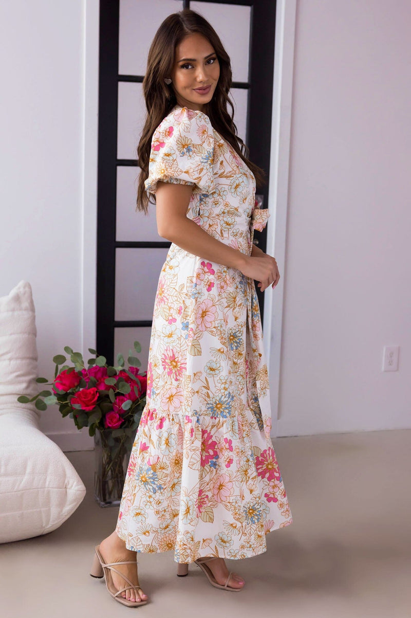 The perfect dress for all of your upcoming special occasions, just twirled it's way into our hearts! Our new, modest, Mirandie dress, is the one for you. Featuring a feminine cross-over neckline, beautiful bubble sleeves, classy tie waist and a flowy ruffle hem skirt.