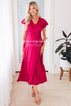 This lovely flowy maxi is bound to be your next summer go to! Featuring a soft v-neckline, belt tie waist, short sleeves, flowy wrap maxi skirt and in classy black! Get yours today!