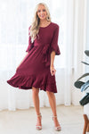 Our absolute new favorite! The Monti is perfection, this gorgeous mid-length dress features a modest round neckline, 3/4 length cross flutter sleeves, cozy soft stretch material, belt tie waist and last but not least the darling faux wrap skirt! These will go quick, get yours before they are gone!