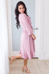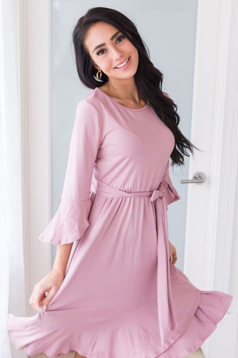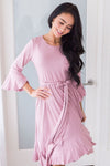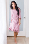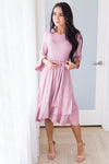 Our absolute new favorite! The Monti is perfection, this gorgeous mid-length dress features a modest round neckline, 3/4 length cross flutter sleeves, cozy soft stretch swiss dot material, belt tie waist and last but not least the darling faux wrap skirt! These will go quick, get yours before they are gone!