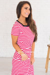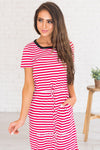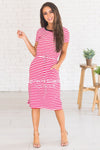 The absolute perfect comfy cozy classy shirt dress has arrived! Featuring rounded neckline, short sleeves, classy drawstring waist, and darling modest hemline slits. Get yours today!