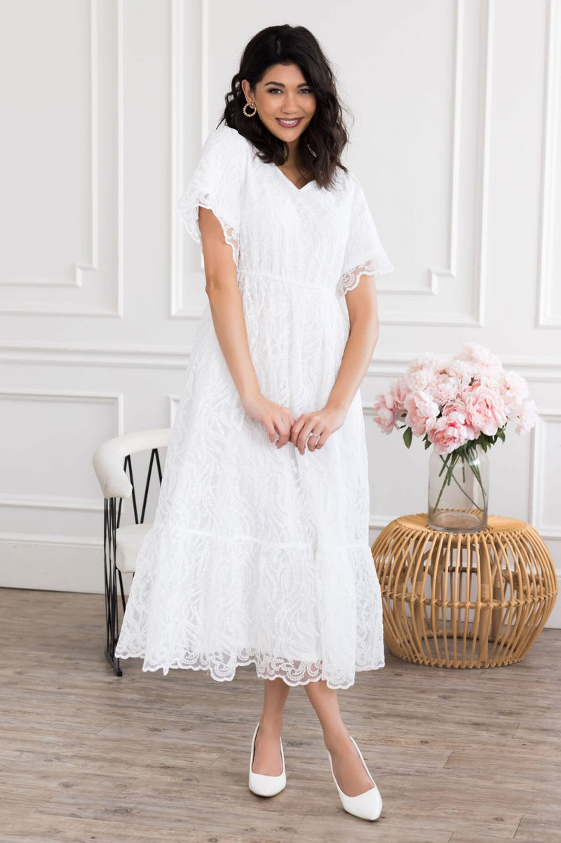 Give us all the delicate feminine details! The Nadene has it all and more, featuring the most gorgeous lace overlay, a flowy ruffle hem skirt, soft v-neckline, pockets and the sweetest short flutter sleeves. Get yours today, these beauties won't last long!