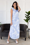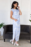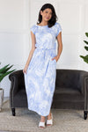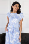 This modest beauty checks all the boxes! Soft, classy, perfect for any occasion! Get yourself the Neely today! Maxi dress features, as always modest style in a gorgeous flowy maxi skirt with side slits, slightly off-shoulder on the left boat neckline, short cap sleeves, flattering tie waistline & pockets. Simply our new favorite marble print!
