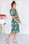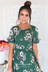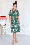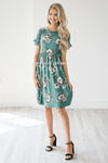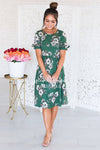 Okay, how adorable are the sleeves on this new dress! They add a cute and feminine detail that we just love. Emerald dress features a pretty floral print, half sleeves with an added ruffle, and a gathered waist. Stretchy and true to size! Get this color of the Nessa today!