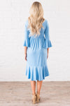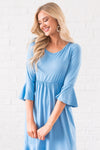 You will have this beautiful dress for years to come and continue to grab for it again and again! It's so soft, gorgeous, feminine and comfortable too. The Ninah is a beautiful ruffle detailed dress that features 3/4 length bell sleeves and a gathered waist.