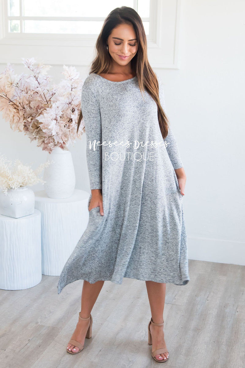 Soft, check! Comfy, check! Beautiful, check! You already know we had to bring you this new, flattering swing dress! Stunning swing dress has side seam pockets and 3/4 length sleeves.