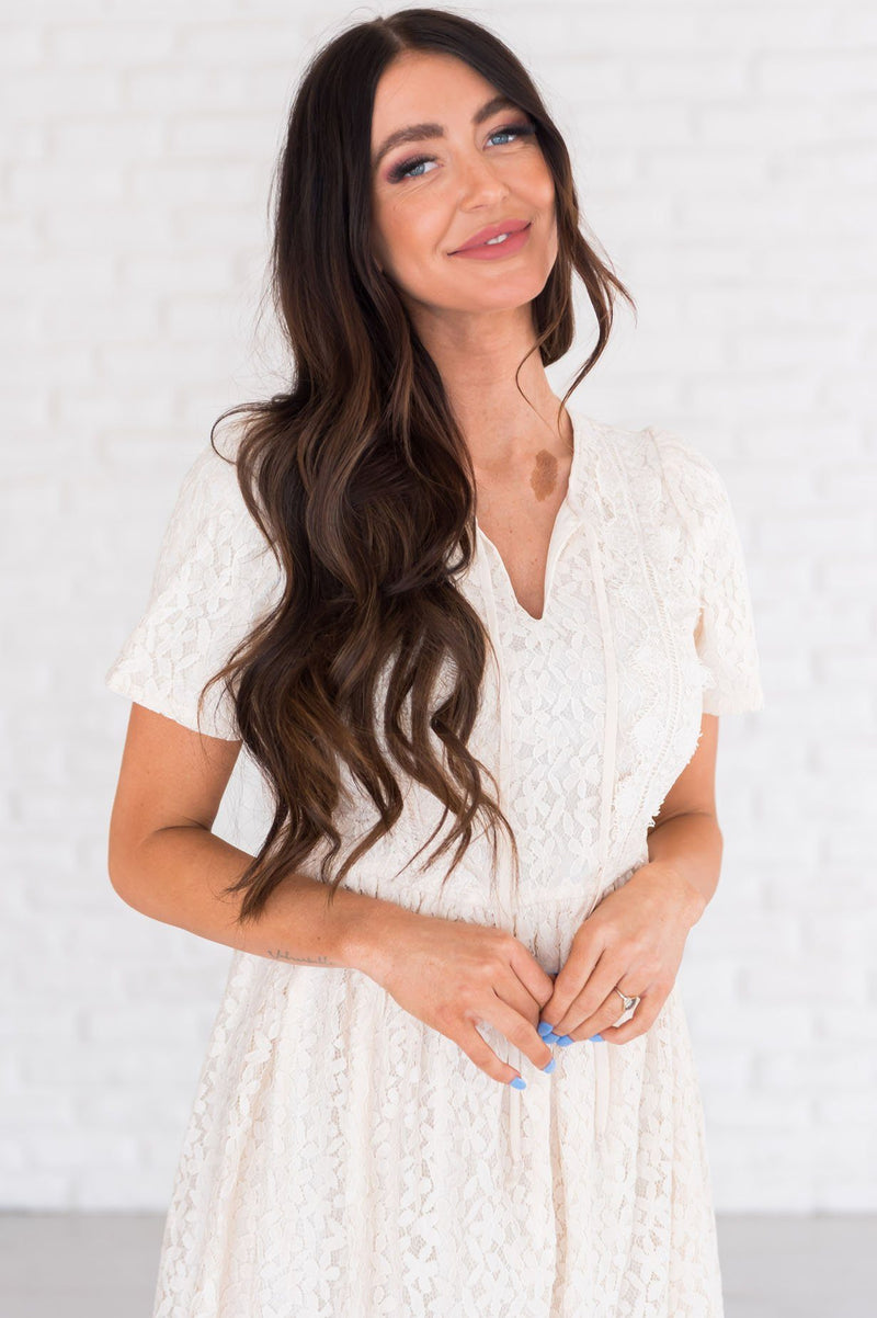 This feminine beauty is here and ready to take your breath away! The fabulous floral lace overlay, tie-neck design, and capped sleeves will have you adoring this piece! We just know you will adore the stunning summer dress!