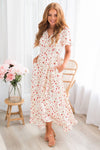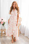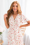Time to brighten up your day with this lovely little floral! Featuring feminine short flutter sleeves, crossover wrap style, pockets and a flowy tea-length skirt. Not to mention the prettiest floral print around! Get yours today!