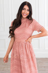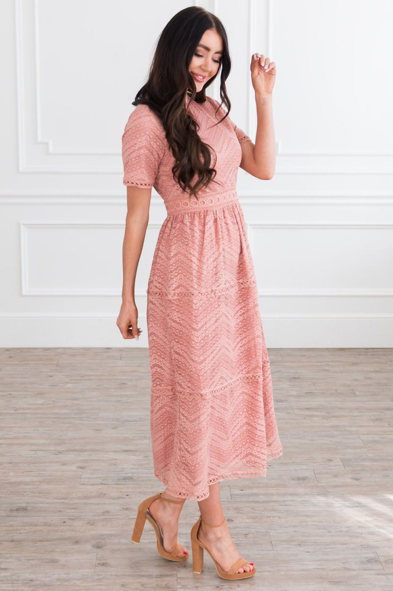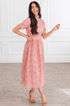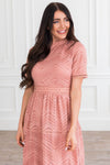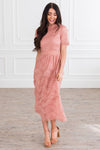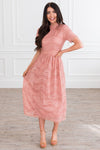 The Onna is an absolute favorite from our spring collection! The retro circle details and lace overlay combined create an elegant and classic style! We adore the modest collared neck and short sleeves too! It is radiant in everyway!