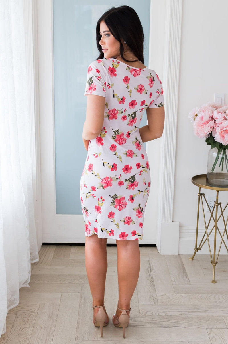 How adorable is our new, modest, Paisley Dress! This cute dress is easy-to-wear and so comfortable. Featuring a round neckline, short sleeves, and a flattering side gather detail.