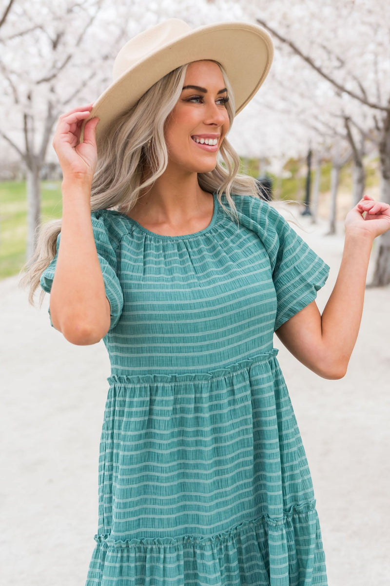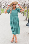 The delicate and oh so darling Paisley has arrived and we are so pleased to share it with you all! Grab this lovely deep teal dress today before they are all gone! Features includes short puff and a tiered perfect length skirt!