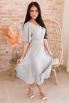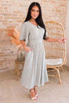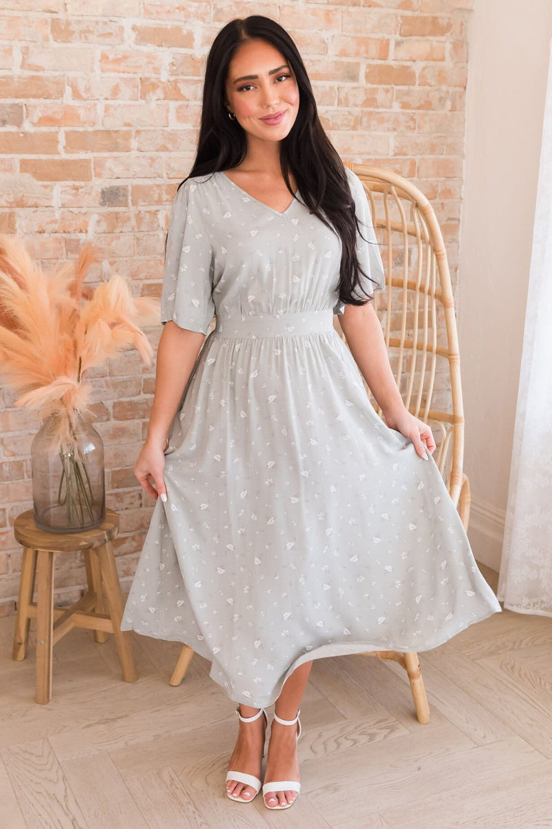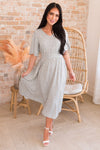 Be prepared to be amazed! This darling Pamelyn has got us obsessed! Featuring the most gorgeous soft v-neckline, banded waistline, half length flutter sleeves, pockets and perfect tea-length skirt. Get yours today!