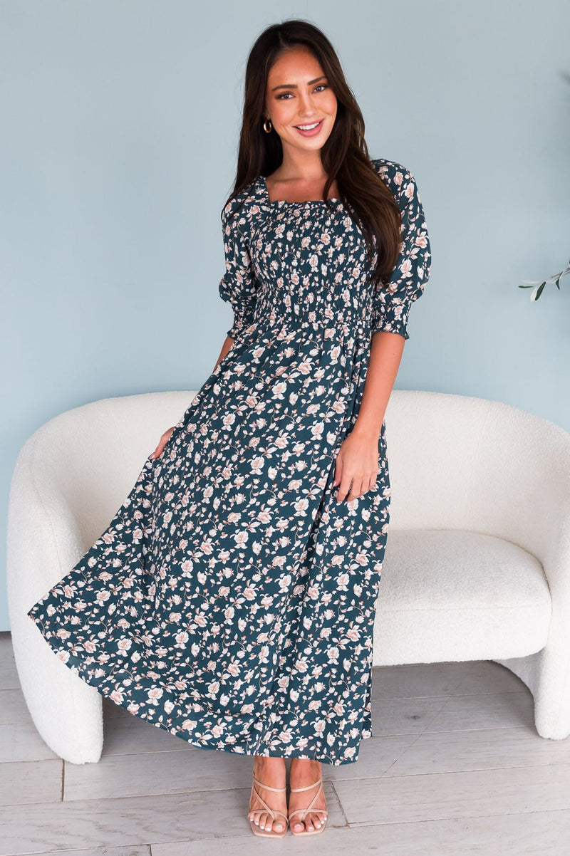 Have we got the perfect Fall floral for you!? The lovely Pepper is beyond perfect, features include a flattering smocked bodice, 3/4 length puff sleeves, elastic waistline and our beloved tea length skirt! Get yours today!