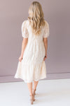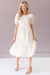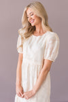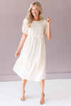 Have you been on the search for the perfect modest nursing friendly dress? Good news, we have got you covered! This flowy feminine beauty has the perfect nursing friendly features, to include, a fully functional hidden zipper in the waistline, short puff sleeves and the most gorgeous textured sheer overlay. Get yours today!