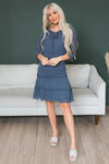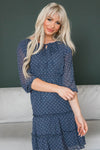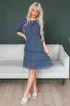 The lovely Phoenix has made it's debut and we couldn't be more excited! This gorgeous modest dress will not last long so be sure to add to cart now! Features include, modest round neckline with tie detail, 3/4 length sleeves and the perfect length tiered skirt.