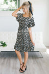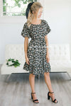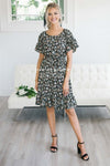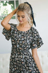 As cute as they come! This light weight, Summer perfect dress is just what you've been searching for.Black dress features a mini floral print with a gathered waist side tie, ruffle sleeves and a ruffle hem detail.