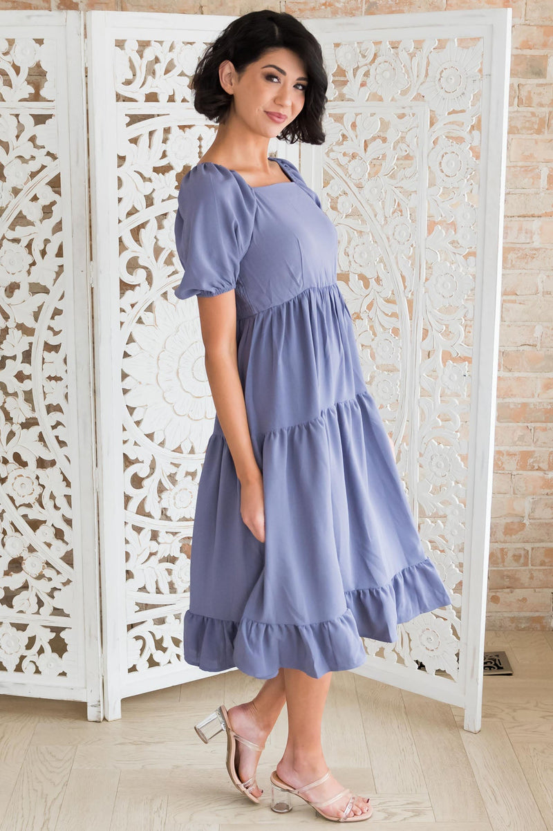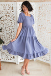 Our new Poppy maxi dress is so stunning! With gorgeous features such as the pretty periwinkle color, ruffle detailing on the tiered maxi skirt, and short puff sleeves; you're sure to turn heads wherever you go! This darling dress has stolen our hearts, make sure to get one before they're gone!