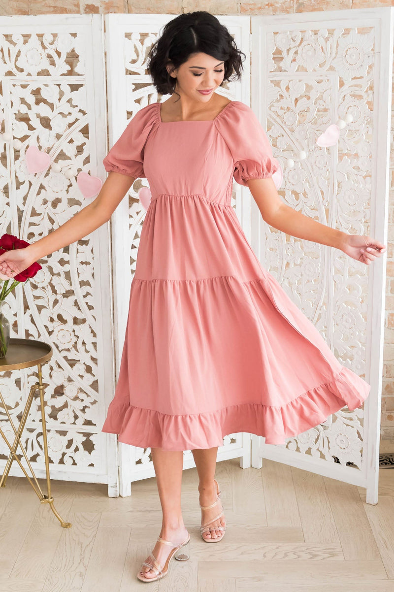Our new Poppy maxi dress is so stunning! With gorgeous features such as the pretty canyon rose color, ruffle detailing on the tiered maxi skirt, and short puff sleeves; you're sure to turn heads wherever you go! This darling dress has stolen our hearts, make sure to get one before they're gone!