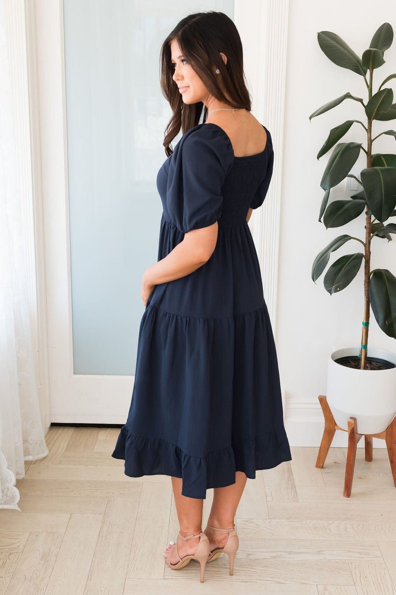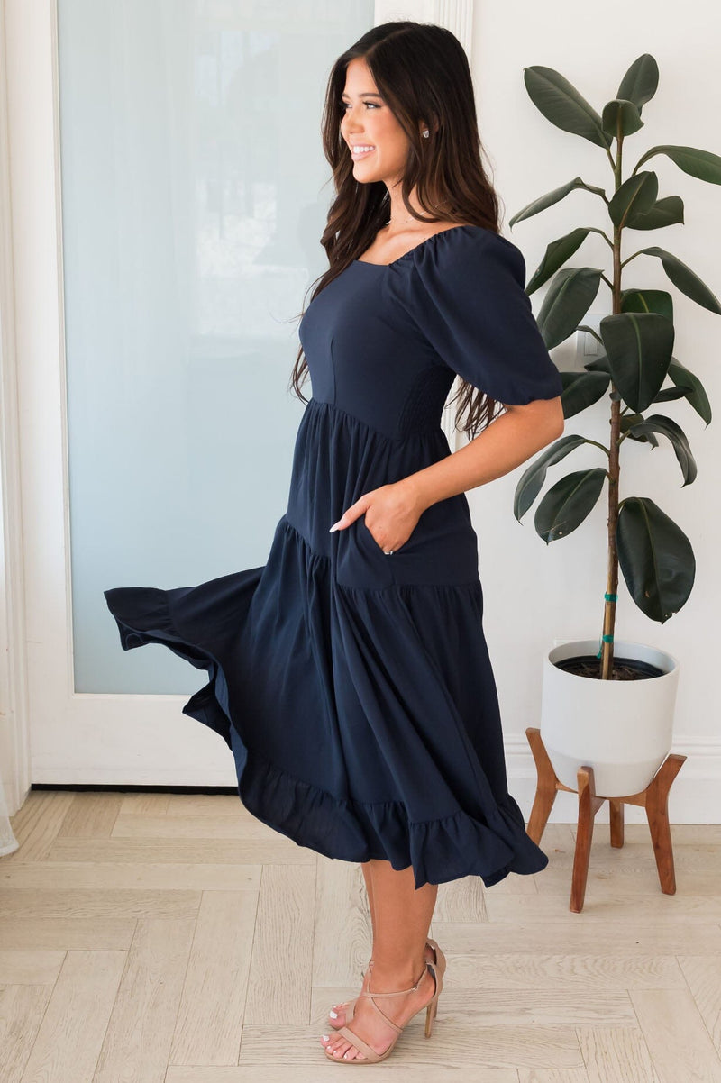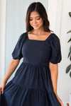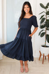 Our new Poppy maxi dress is so stunning! With gorgeous features such as the pretty midnight sky color, ruffle detailing on the tiered maxi skirt, and short puff sleeves; you're sure to turn heads wherever you go! This darling dress has stolen our hearts, make sure to get one before they're gone!