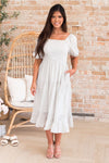 Our new Poppy maxi dress is so stunning! With gorgeous features such as the pretty gardenia branches floral, ruffle detailing on the tiered maxi skirt, and short puff sleeves; you're sure to turn heads wherever you go! This darling dress has stolen our hearts, make sure to get one before they're gone!