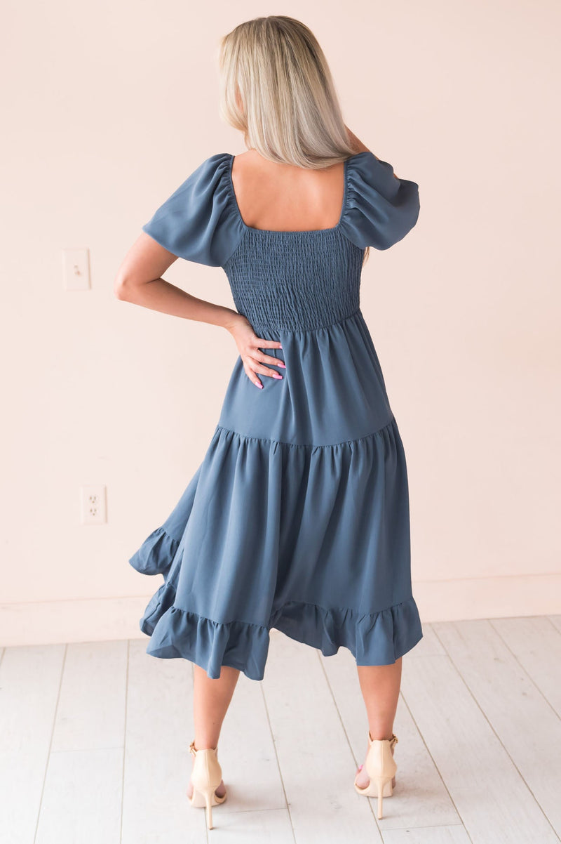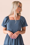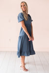 Our new Poppy maxi dress is so stunning! With gorgeous features such as the pretty dark navy color, ruffle detailing on the tiered maxi skirt, and short puff sleeves; you're sure to turn heads wherever you go! This darling dress has stolen our hearts, make sure to get one before they're gone!