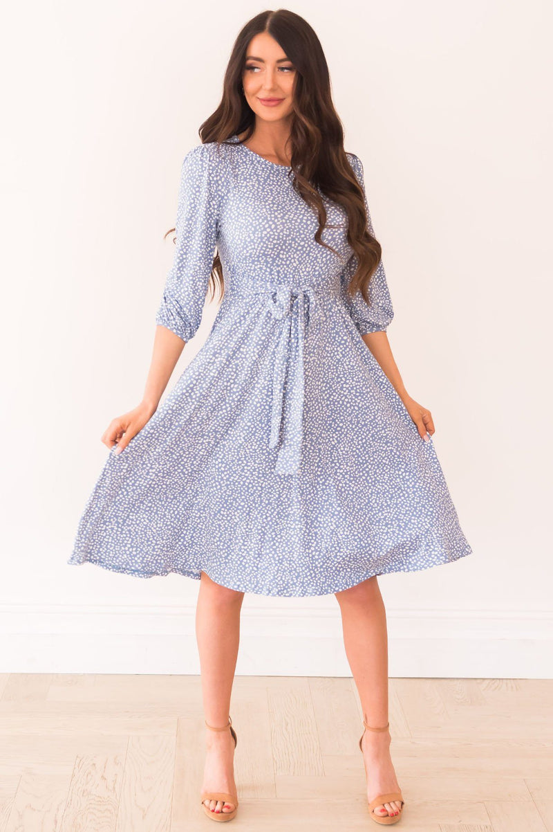 The Prescott is a new spin on a classic fan favorite! We just adore the tie waist and fun pebble pattern! The quarter sleeves and flow skirt are a perfect together! We know you'll just love this fabulous dress as much as we do!