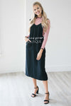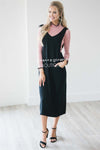 The perfect fall overall dress just arrived! Comfy and cute, there is no way you can go wrong with The Rachel! This new dress features a relaxed fit, a v neck line and side pockets!