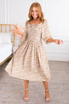 The Rachelanne has so many feminine details we knew we just had to have it! We are loving the smocked bodice with elegant ruffled detailing, 3/4 length puff sleeves, pockets and perfect tea-length skirt! This dress is a true must have!