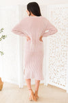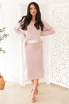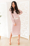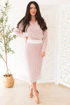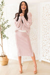 This darling modest 2 piece set is a mix and match dream come true! Just think of all the cute creations you can come up with! Featuring lovely ribbed two tone sweater, top has soft v-neckline with long sleeves and the skirt features an elastic waistband with modest side slits. Cute separately, even cuter together, get yours today!