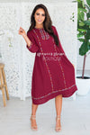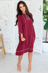 The Rayna is here and we are loving it! This modest midi features, a round neckline, embroidered bodice, 3/4 length sleeves, and even comes with pockets! The baby doll style fit is very flattering and also comfortable for an all day wear! Get The Rayna today!