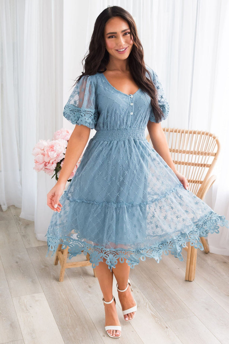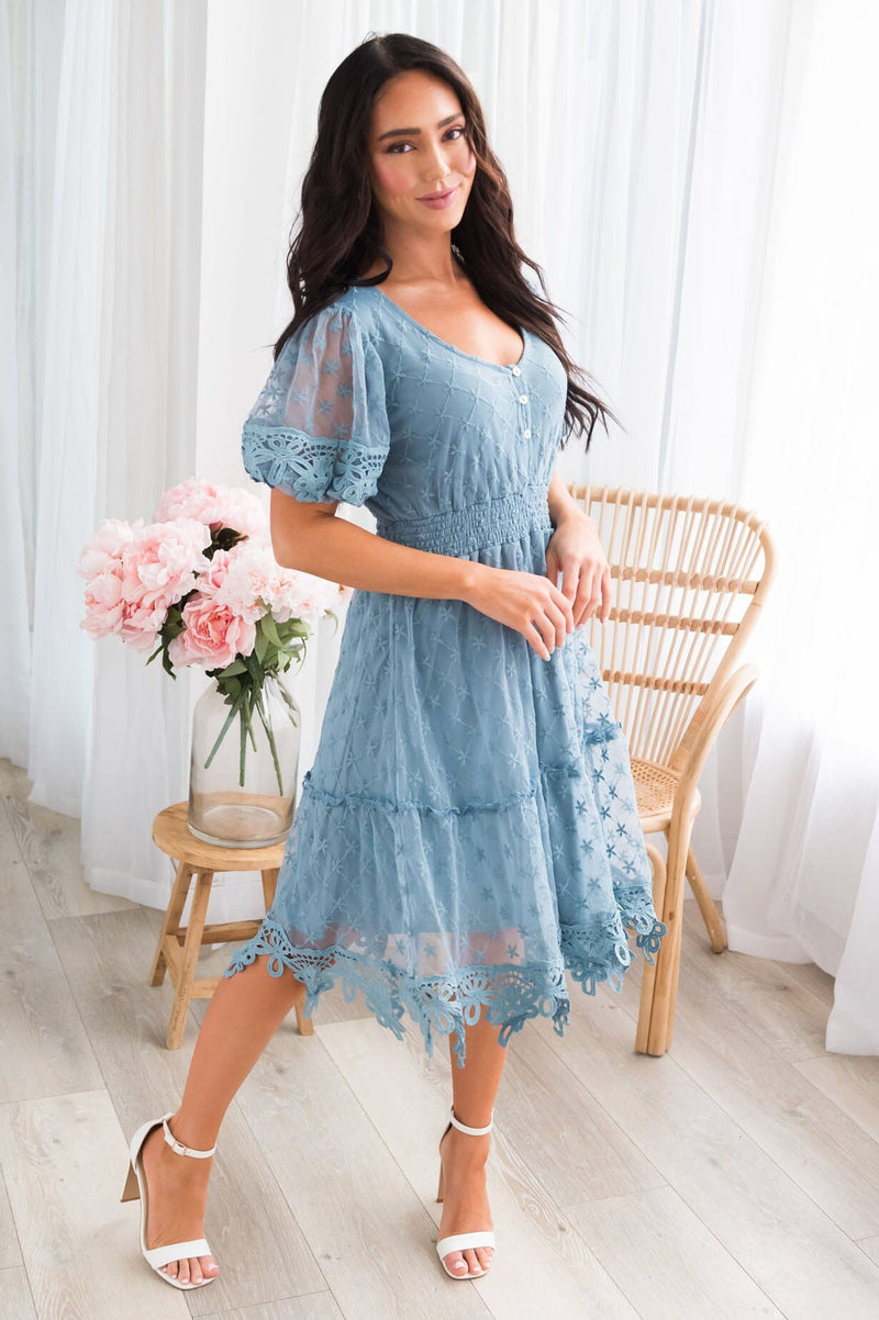 The lovely lace Reece has arrives and trust us when we say you must have this beauty! The darling embroidered detailed lace and tiered ruffle skirt are the perfect combination. Not to mention the flattering smocked waistline and short flutter sleeves. Get yours today!