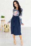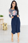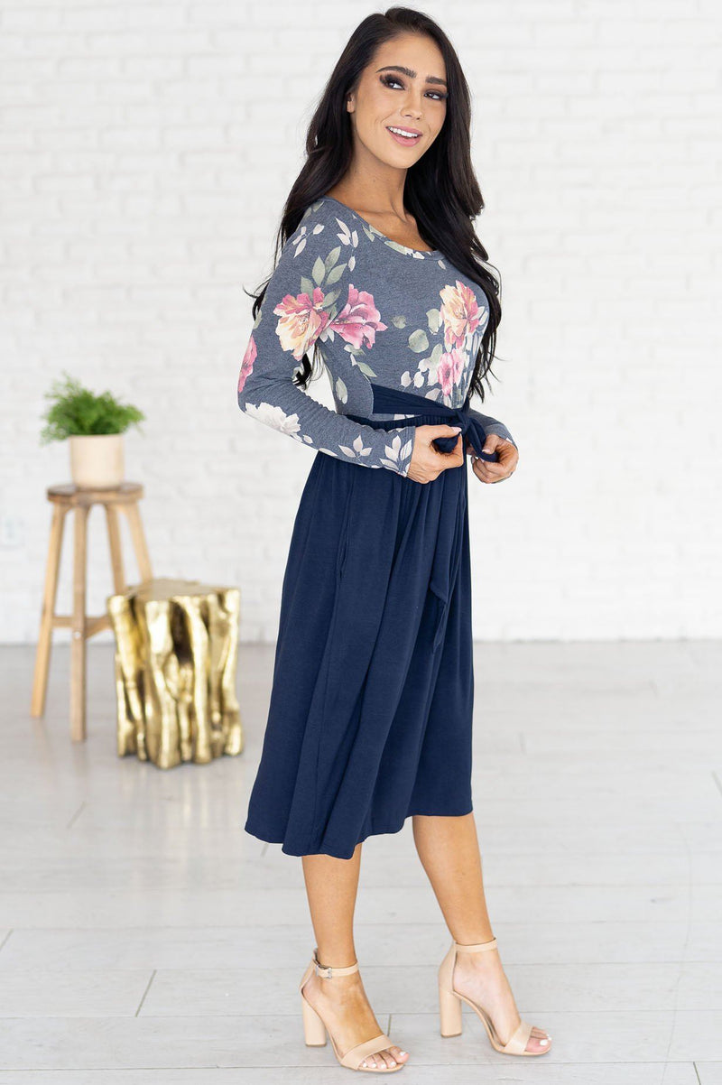 When the lovely Regan arrived our day was made! We simply adore this mid-length floral! Featuring a round neckline, long sleeves and a belt tie waist. Grab yours before they're gone!