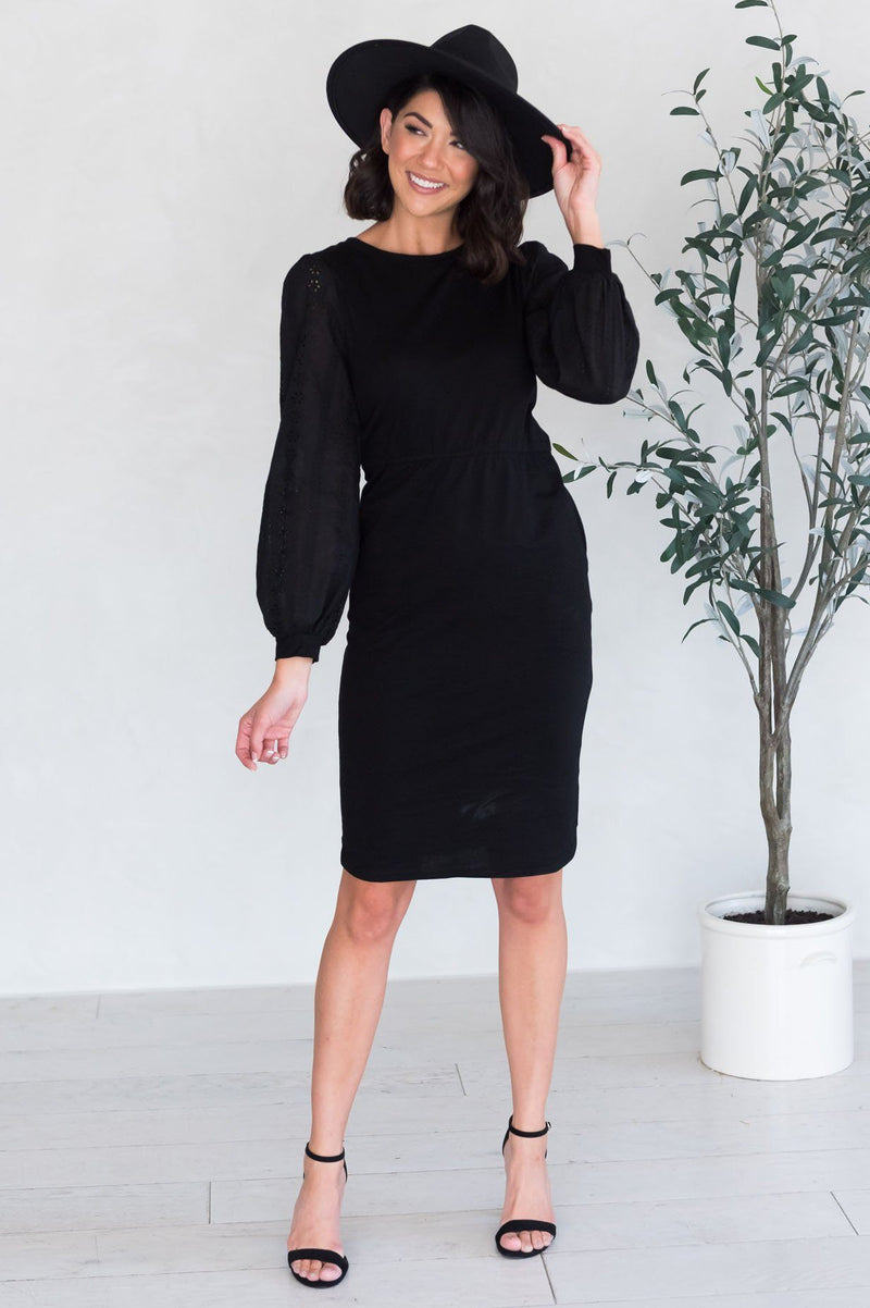 The Regan is the absolute perfect match for fall! We love the delicate eyelet detailing on the lovely long puff sleeves. The fit and style of this dress is flattering to all figures and is the perfect modest pick for any wardrobe!