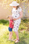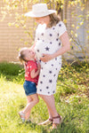 Our new Reyna is sweet, just like candy! We are loving these stars! Let's talk about the material because it is literally so soft. This is going to be one of those just throw on and go dresses making it so convenient for everyone! This dress features short sleeves, round neckline and it has pockets!