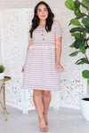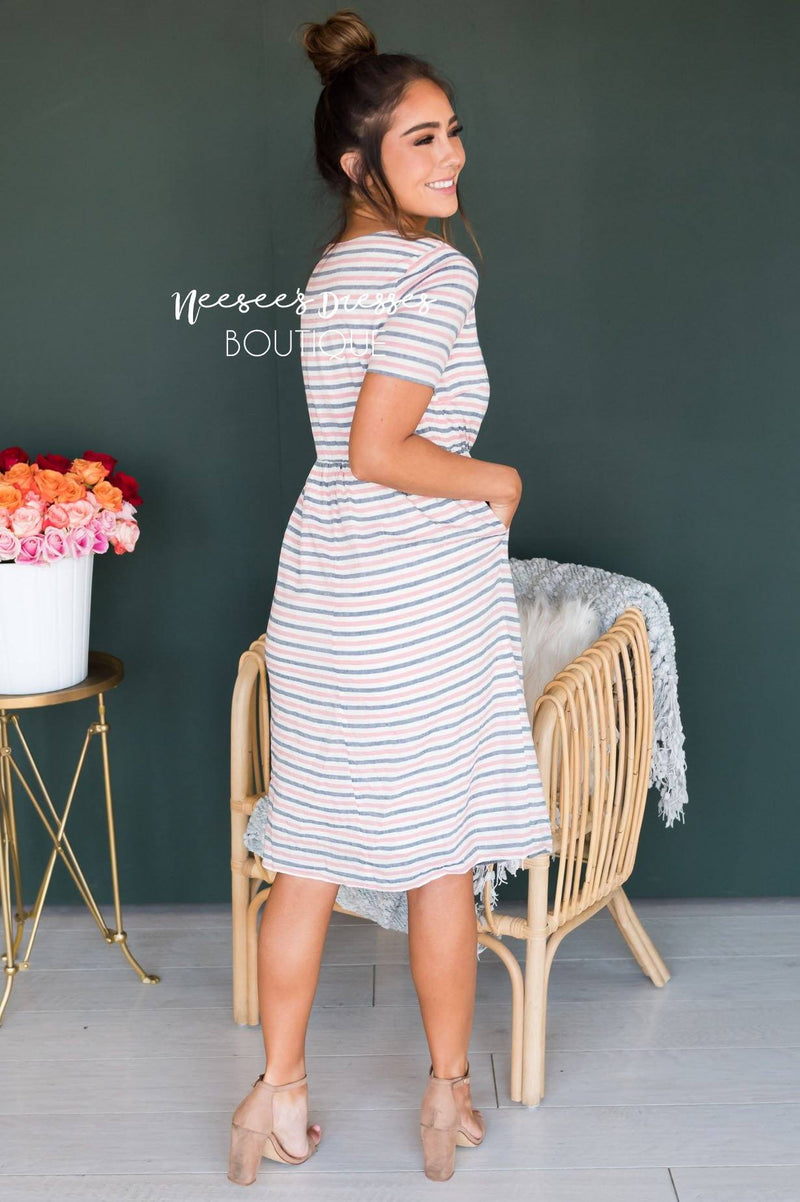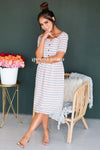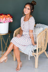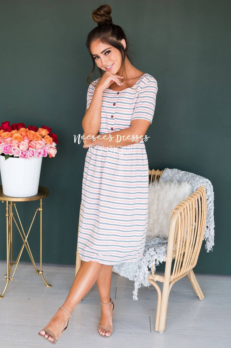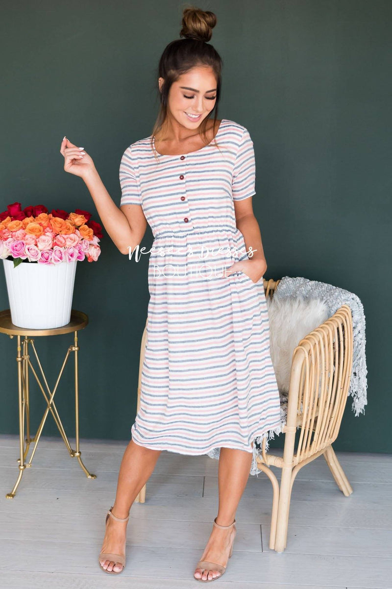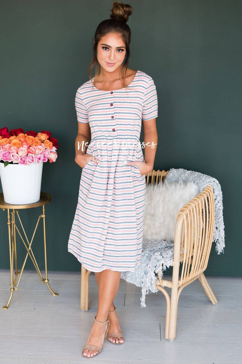 We are swooning over The Rivka this is going to be the sweetest dress you can find! Such a feminine feel from the color scheme which is absolutely perfect for Spring. The bodice features a gorgeous button down detail which is completely functional. This dress features a u-shaped neckline, elastic waistband, lined everywhere but arms and of course it has pockets! Perfect for all the nursing moms out there!