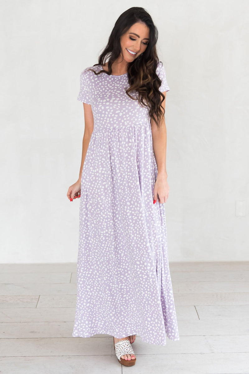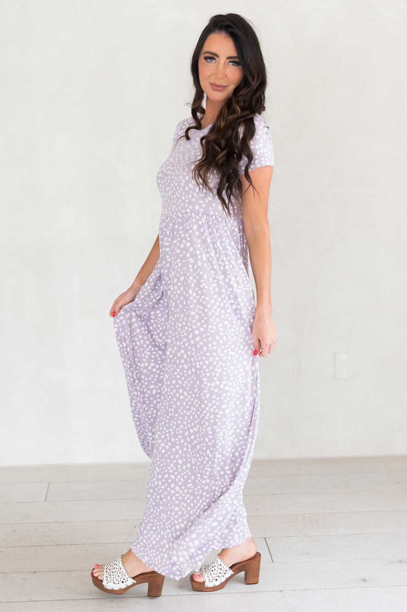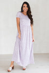 We love to share our love for maxi dresses with all of you! That's why we our giving the gift of maxi galore! This beauty features gorgeous lavender color with darling white leopard print, short sleeves, round modest neckline, and of course pockets, don't forget the most softest material EVER!
