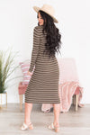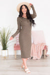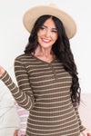 The Robin is the most gorgeous sweater dress we've ever seen! Featuring a gorgeous olive green color, cream stripes, a button up bodice that makes this nursing friendly, super soft sweater material, long sleeves, and lettuce edge hems! Make sure to get yours soon!