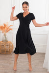 The Rooney radiates complete elegance and class! This simple, yet stunning gown has a beautiful tie waist and flowy skirt! The sleek black color and cap sleeves are perfect for any occasion! This petal like skirt will have you in awe!