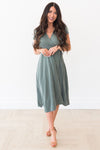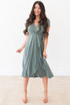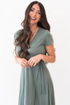 The Rooney radiates complete elegance and class! This simple, yet stunning gown has a beautiful tie waist and flowy skirt! The sleek green color and cap sleeves are perfect for any occasion! This petal like skirt will have you in awe!