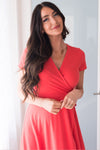 The Rooney radiates complete elegance and class! This simple, yet stunning gown has a beautiful tie waist and flowy skirt! The sleek red color and cap sleeves are perfect for any occasion! This petal like skirt will have you in awe!
