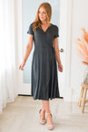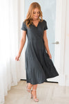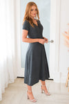 The Rooney radiates complete elegance and class! This simple, yet stunning dress has a beautiful tie waist and flowy skirt! The perfect for Winter grey color and short sleeves are perfect to wear solo or pair with your favorite sweater!