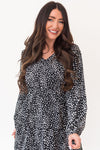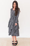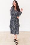 Have you been on the search for the perfect animal print dress? This darling uniquely designed abstract animal print is got to be your next must have then! We are loving the soft v-neckline, long sleeves and classy tiered ruffle skirt. Get yours today!